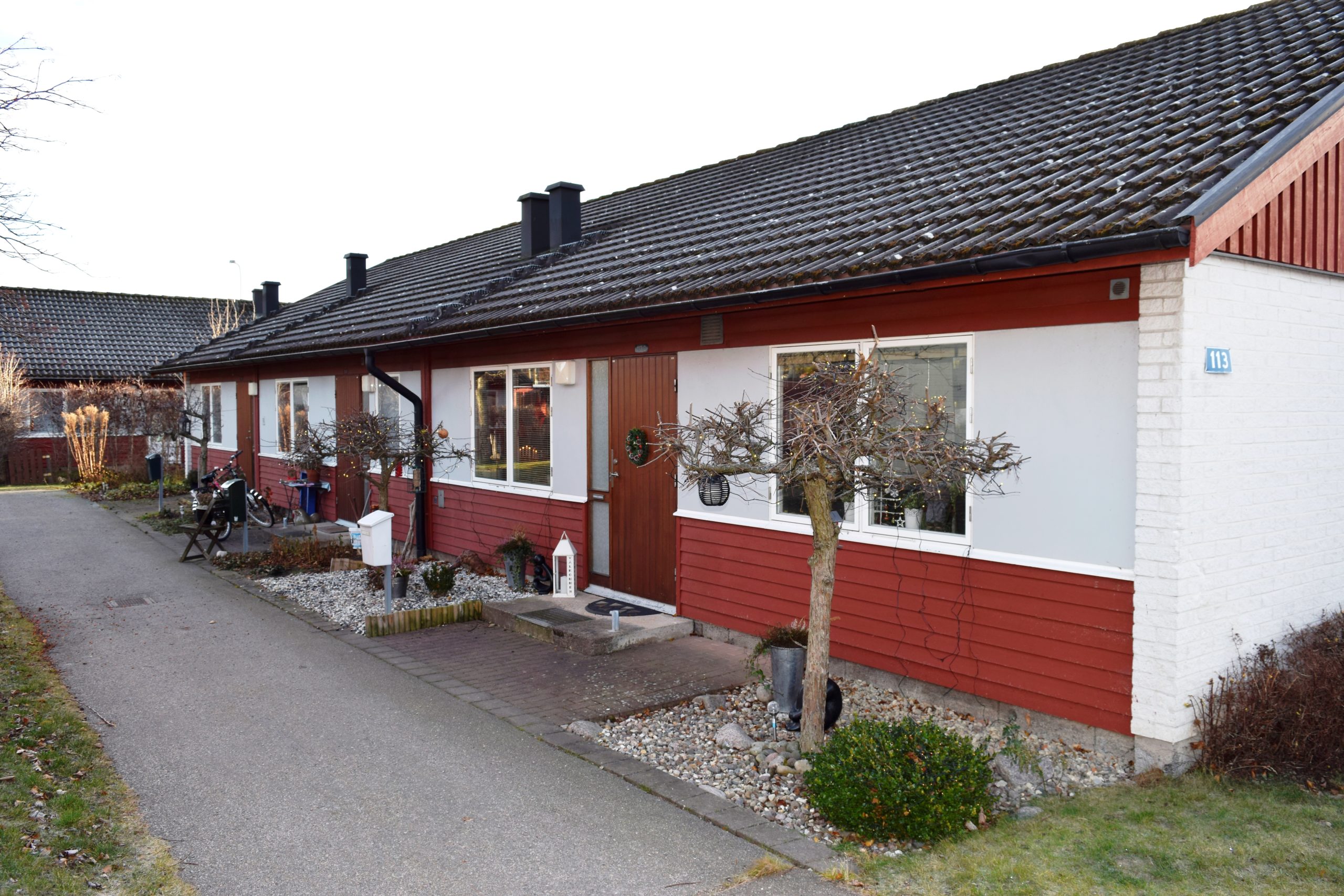 Lägenheten har egen entré och en fin uteplats som ett litet radhus.