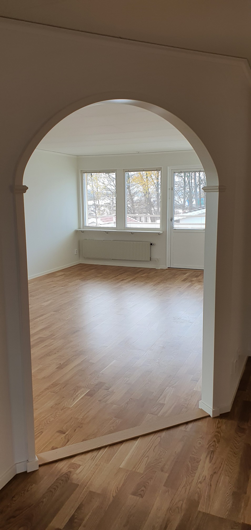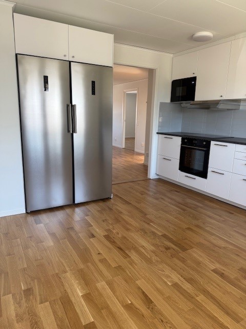 Här är en totalrenoverad lägenhet 2024 november med ljusa fina materialval.