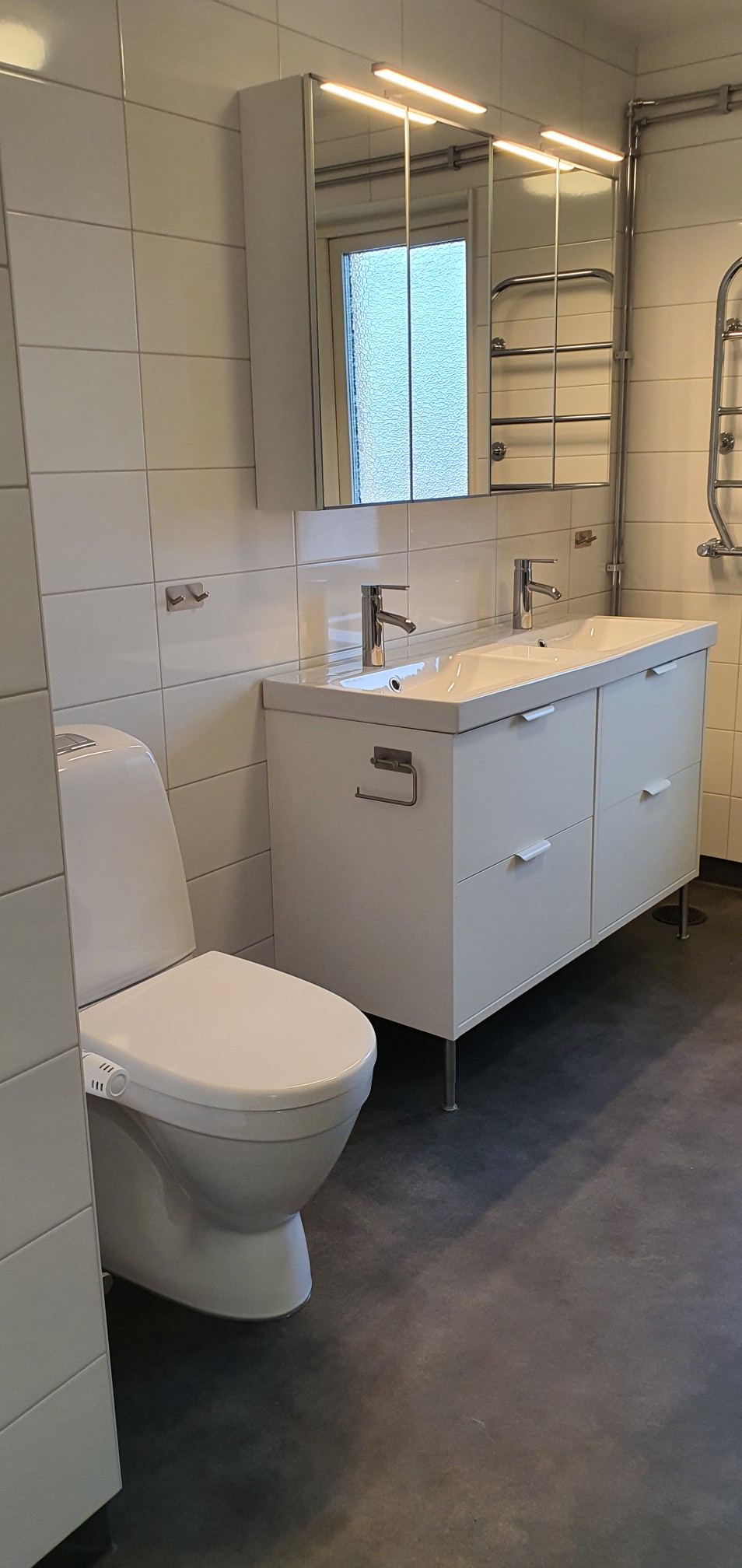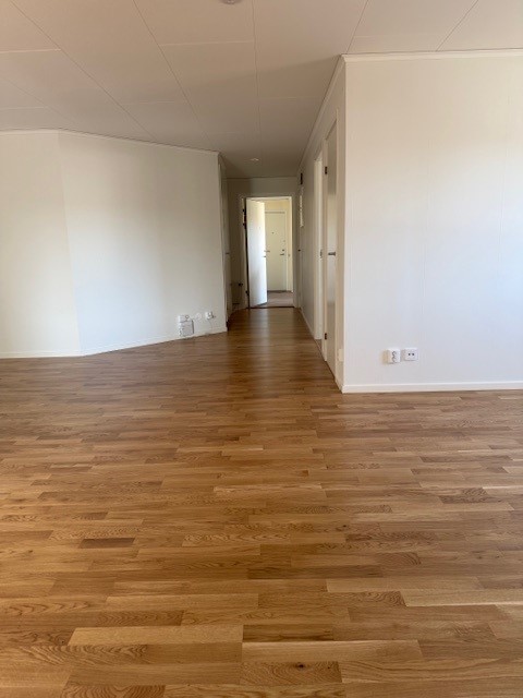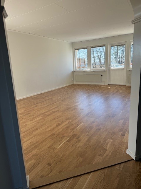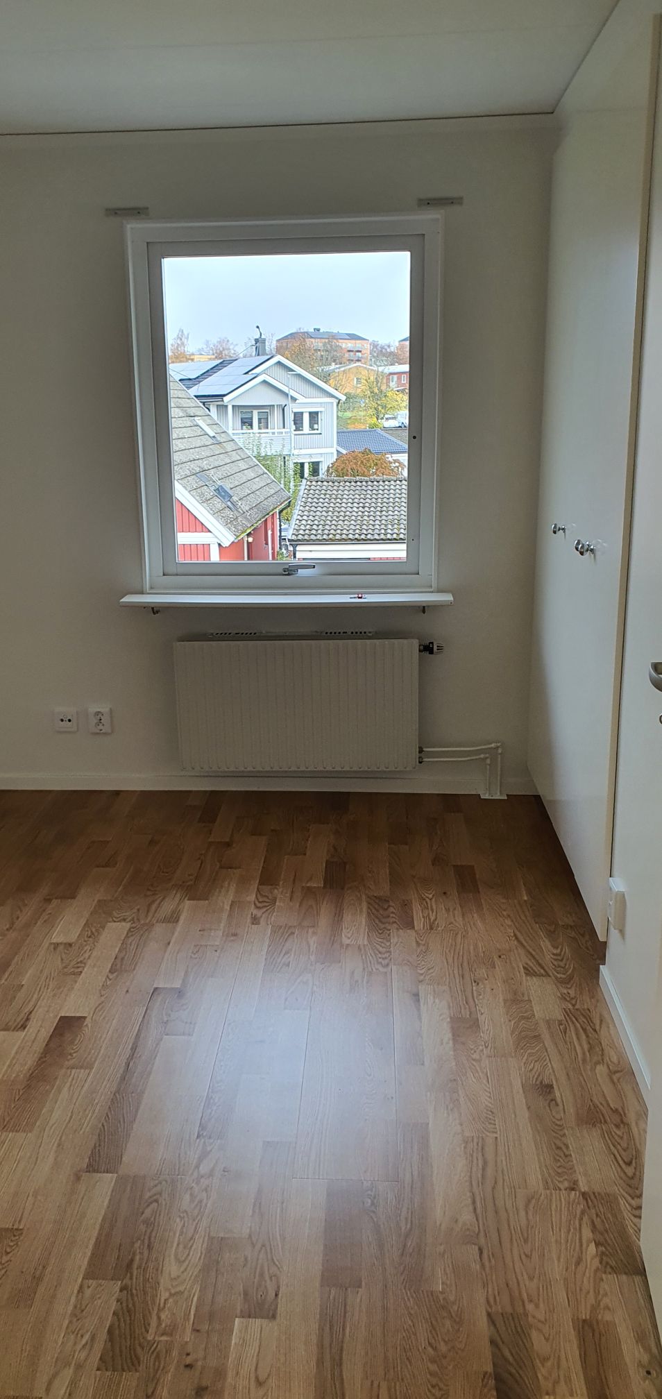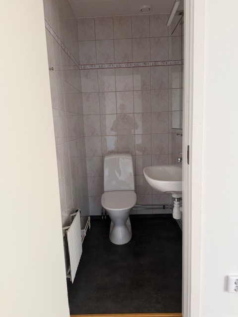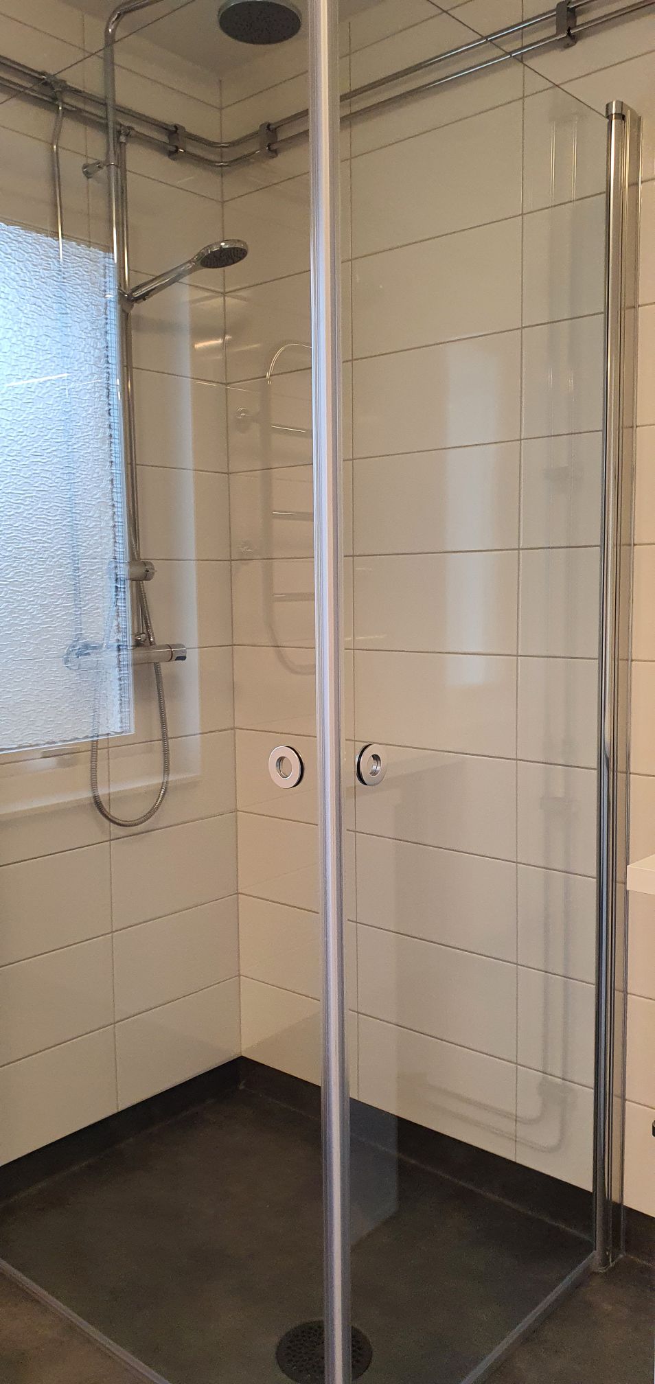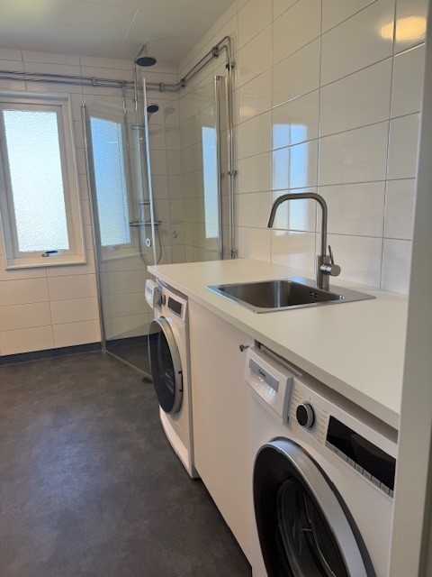 Lägenheten har nykaklat badrum med dusch och en tvätt avdelning med tvättmaskin och torktumlare.